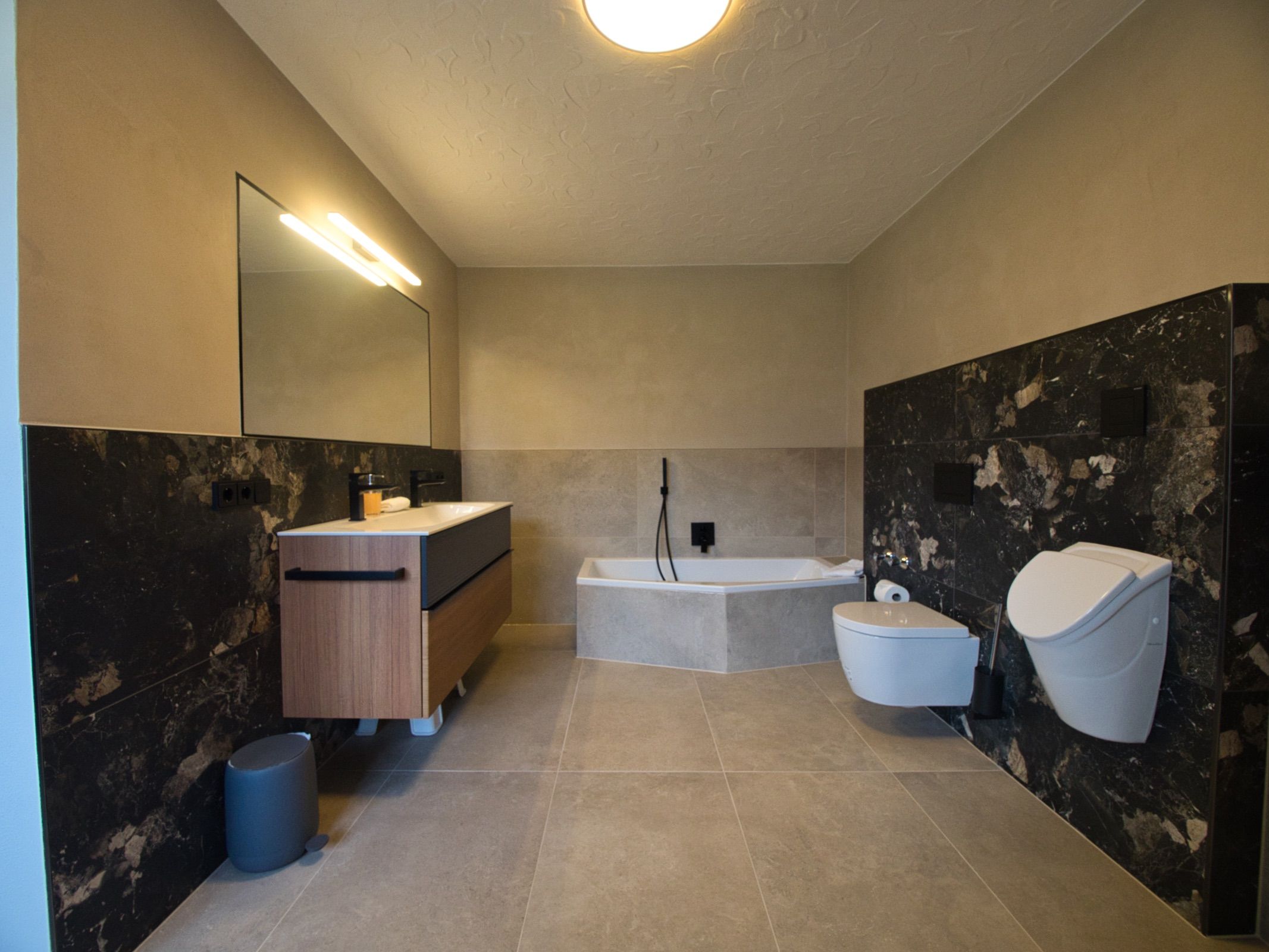 Der Wohnbereich ist sehr großzügig, luxuriös, wunderschön und hochwertig eingerichtet, schöne Balkone, die Küche ist bestens ausgestattet und der Saunabereich einfach toll. Die Fenster sind gut isoliert, so dass der morgendlich etwas vermehrte Straßenverkehr eigentlich nicht störte. Die Gegend ist traumhaft schön. Wir haben einen wunderbaren Urlaub mit 6 Personen verbracht.