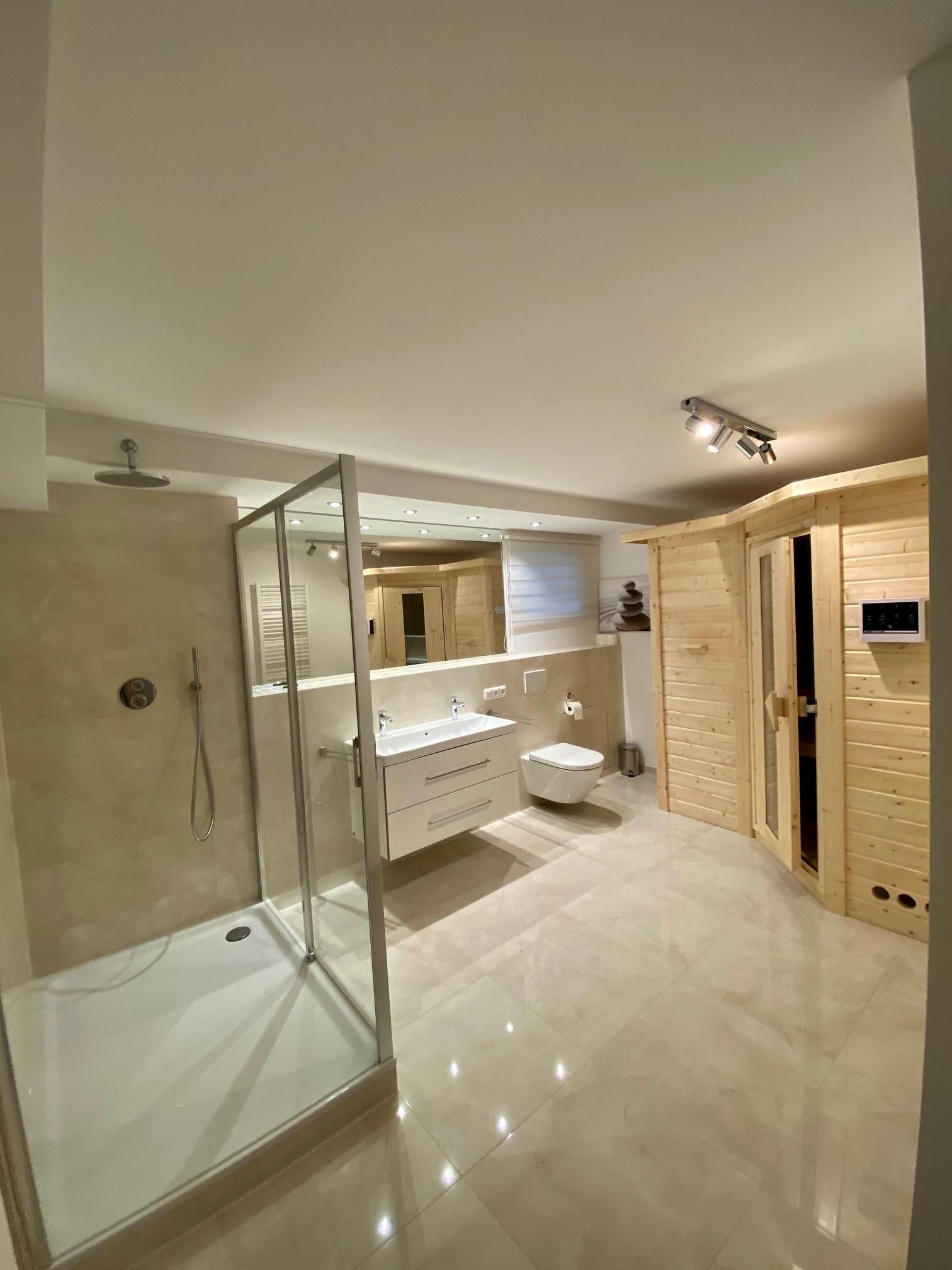 Die Lage des Ferienhauses ist ausgezeichnet. Bergsicht ist garantiert (soweit das Wetter nicht total schlecht ist natürlich). Um das Haus herum ist es sehr ruhig, aber man ist sehr schnell überall, wo man hin möchte. Den "kleinen Einkauf" (Frühstücksbrötchen, etc.) kann man in rd. 100 m Entfernung machen; zwei Restaurants und dazu noch eine kleine Pizzeria sind in unmittelbarer Nähe. Das Auto lässt sich bequem neben dem Haus auf dem Ferienhausgrundstück abstellen. Die Ausstattung des Ferienhauses ist gehoben und lässt keine Wünsche offen! Es ist unheimlich viel Platz, so dass man sich auch bei schlechtem Wetter so "verteilen" kann, dass man mal "für sich sein kann", wenn man das möchte. Das geschmackvoll eingerichtete Wohn-Ess-Zimmer ist riesig mit einem schönen runden Tisch für die Mahlzeiten und mehreren Couches und Sesseln als Sitzgelegenheiten. Der WLAN-Empfang ist ordentlich und stabil. Im Flur im Obergeschoss befindet sich sogar ein kleiner Schreibtisch, falls man auch im Urlaub mal arbeiten muss. Waschmaschine und Trockner im großen Keller, der genügend Platz zum Trocknen von Wäsche bietet (falls man doch mal waschen muss), ist ebenfalls ein großes Plus. Das Ferienhaus hebt sich vom Gros der Ferienhäuser und Ferienwohnungen deutlich ab. Hier zeigt sich, dass schon bei der Ausstattung mitgedacht wurde. Wir hatten aus langjährigen Erfahrungen heraus viele Dinge, die ansonsten in Ferienwohnungen fehlen und die man sich dann vor Ort besorgen muss, bereits mitgenommen, haben aber dann festgestellt, dass wirklich (nahezu) alles schon vorhanden war. Wir sind bei der Ankunft rein gekommen und haben uns sofort wohlgefühlt! Die Abwicklung (Übergabe der Wohnung bei Ankunft und Abreise) war sehr problemlos. Die Kontaktpersonen des Vermieters sind sehr freundlich und hilfsbereit und reagieren auf Anfragen/Rückfragen schnell!