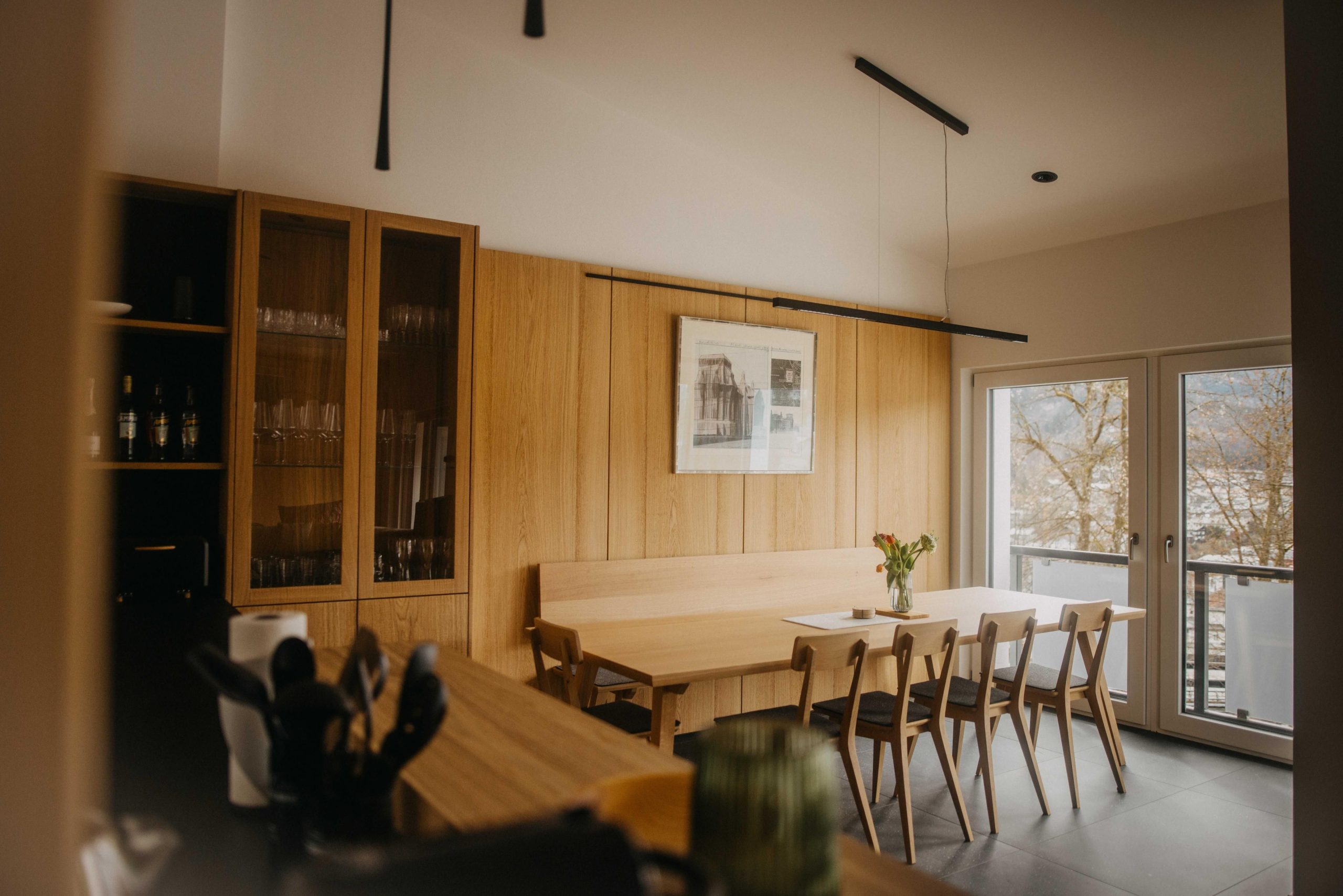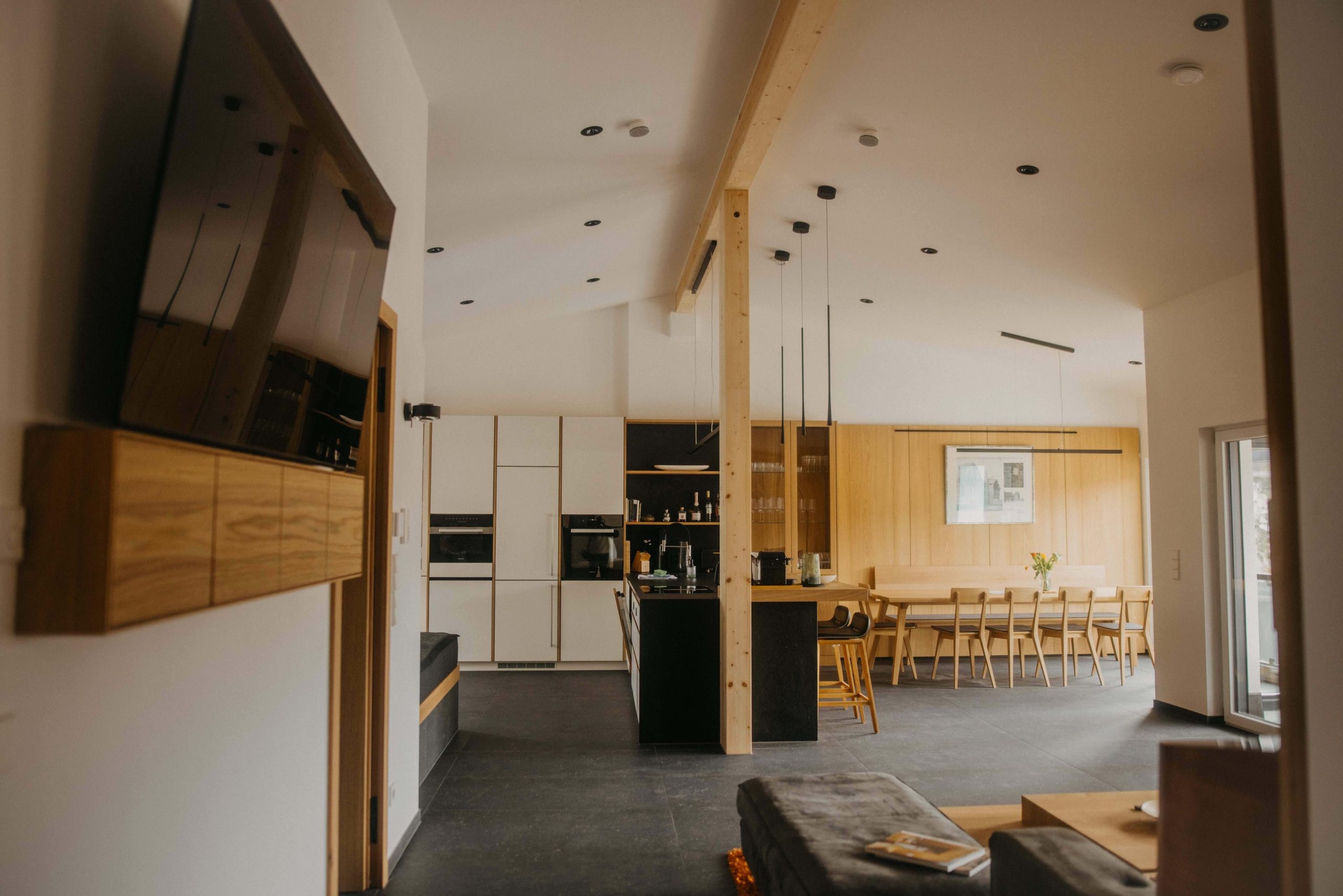 Unser Penthouse liegt im zweiten Stock eines hochwertigen Neubaus und ist barrierearm über den Aufzug erreichbar. Bodentiefe Fenster öffnen den Blick auf die Berge. Hohe Decken, sichtbare Holzelemente und ein stimmiges Lichtkonzept schaffen ein offenes...