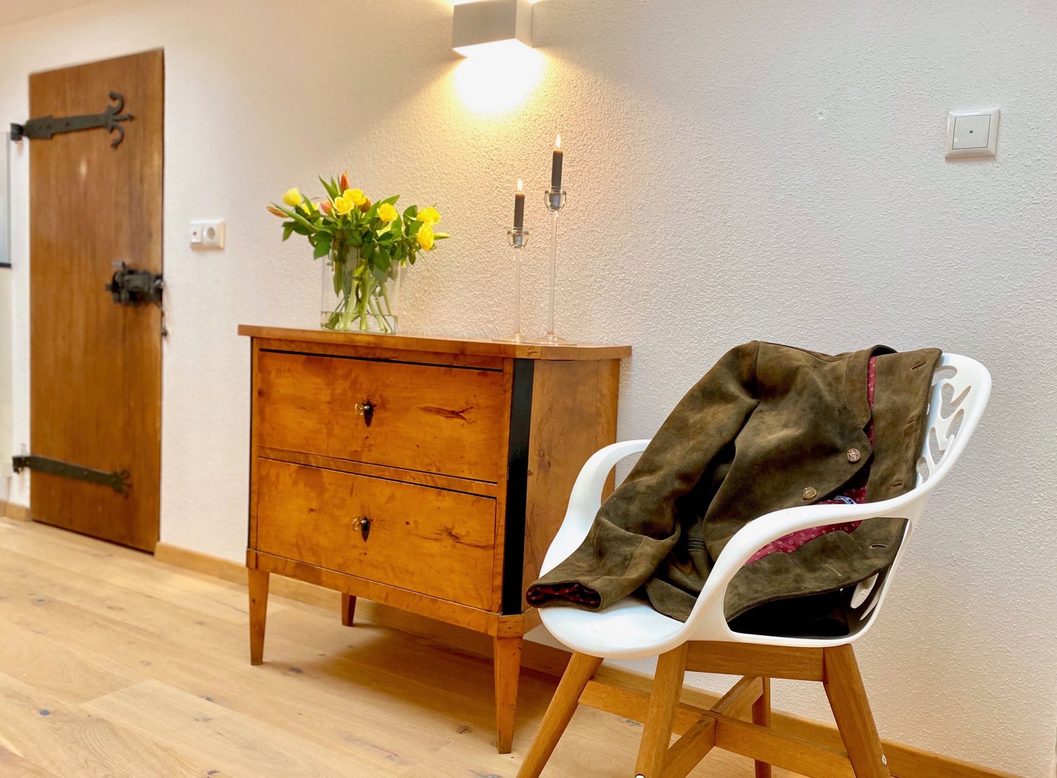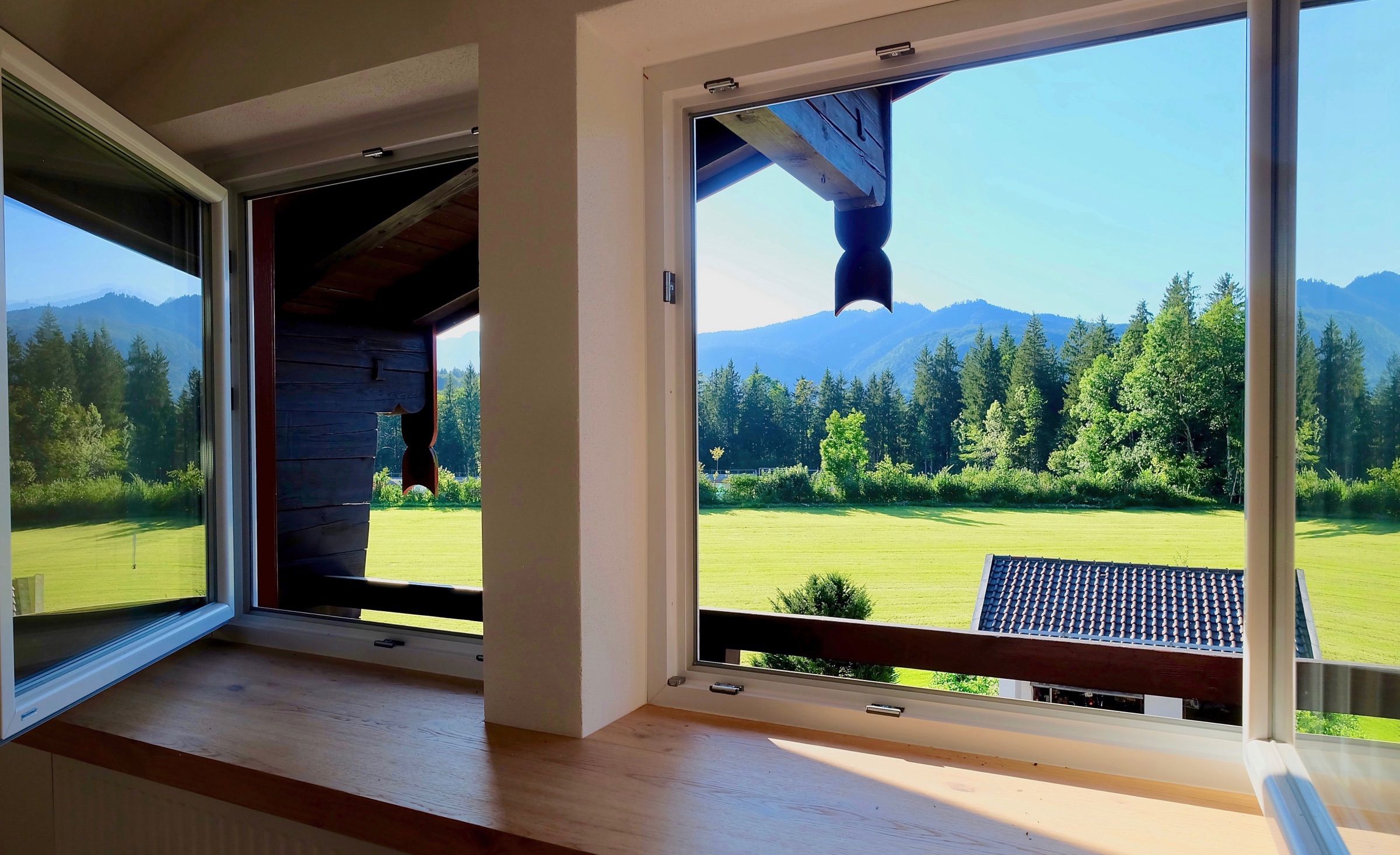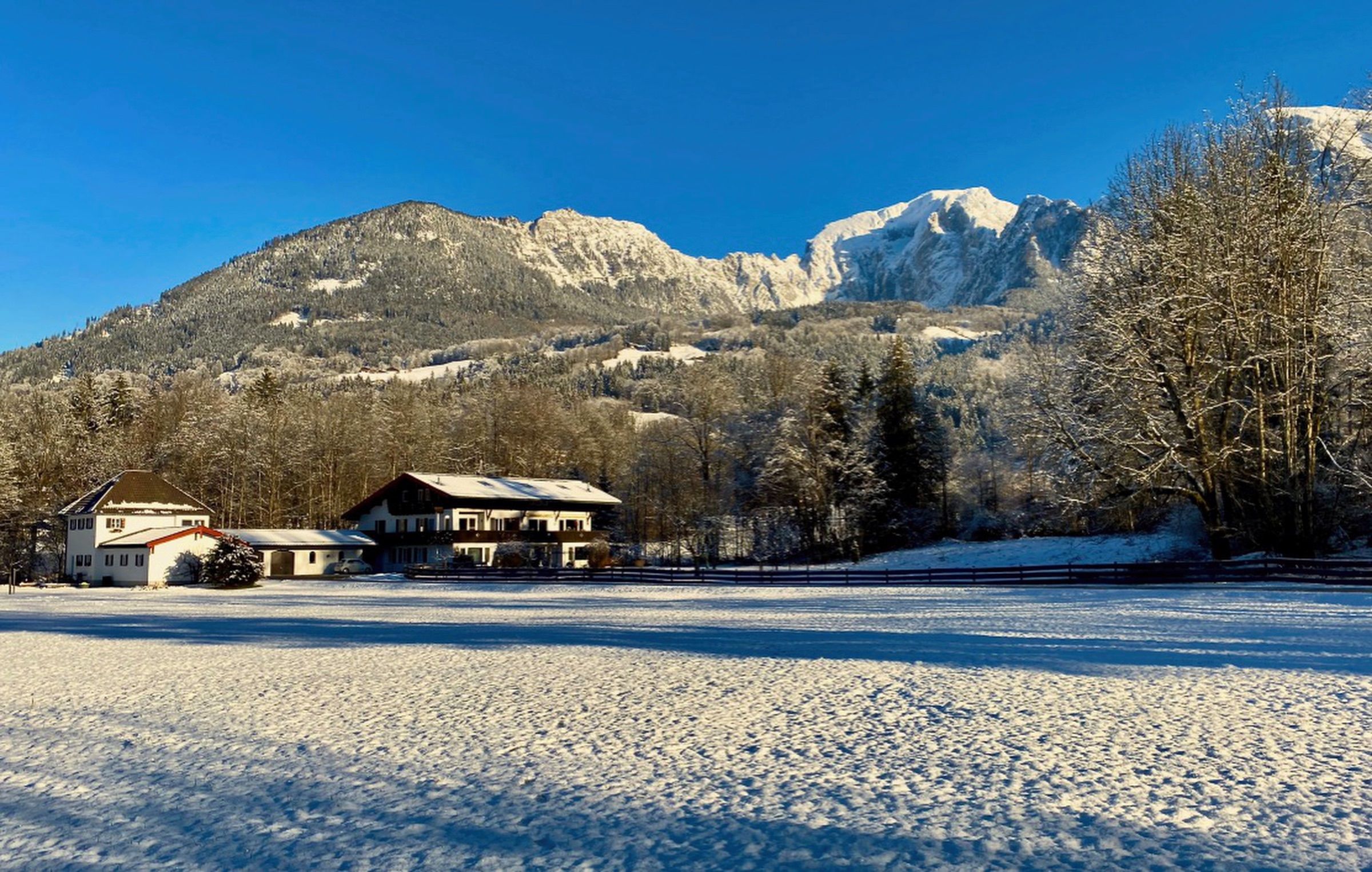 Diese Ferienwohnung im Schneewinkllehen verbindet historisches Ambiente mit zeitgemäßem Wohnkomfort. Sie liegt idyllisch am Ende einer Sackgasse, umgeben von Wiesen und Feldern, und bietet einen unverstellten Blick auf die Berchtesgadener Bergwelt.
